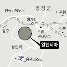 알펜시아 리조트는 평창군 도암면 용산리와 수하리 일대 용평 리조트 인근 4.89㎢(약 148만평)에 조성하고 있다. 2010 동계 올림픽 유치 당시에 드러난 약점 ... 이에따라 강원도는 경기 핵심시설이 들어가는 사계절 종합 리조트인 알펜시아를 제시했다. ...